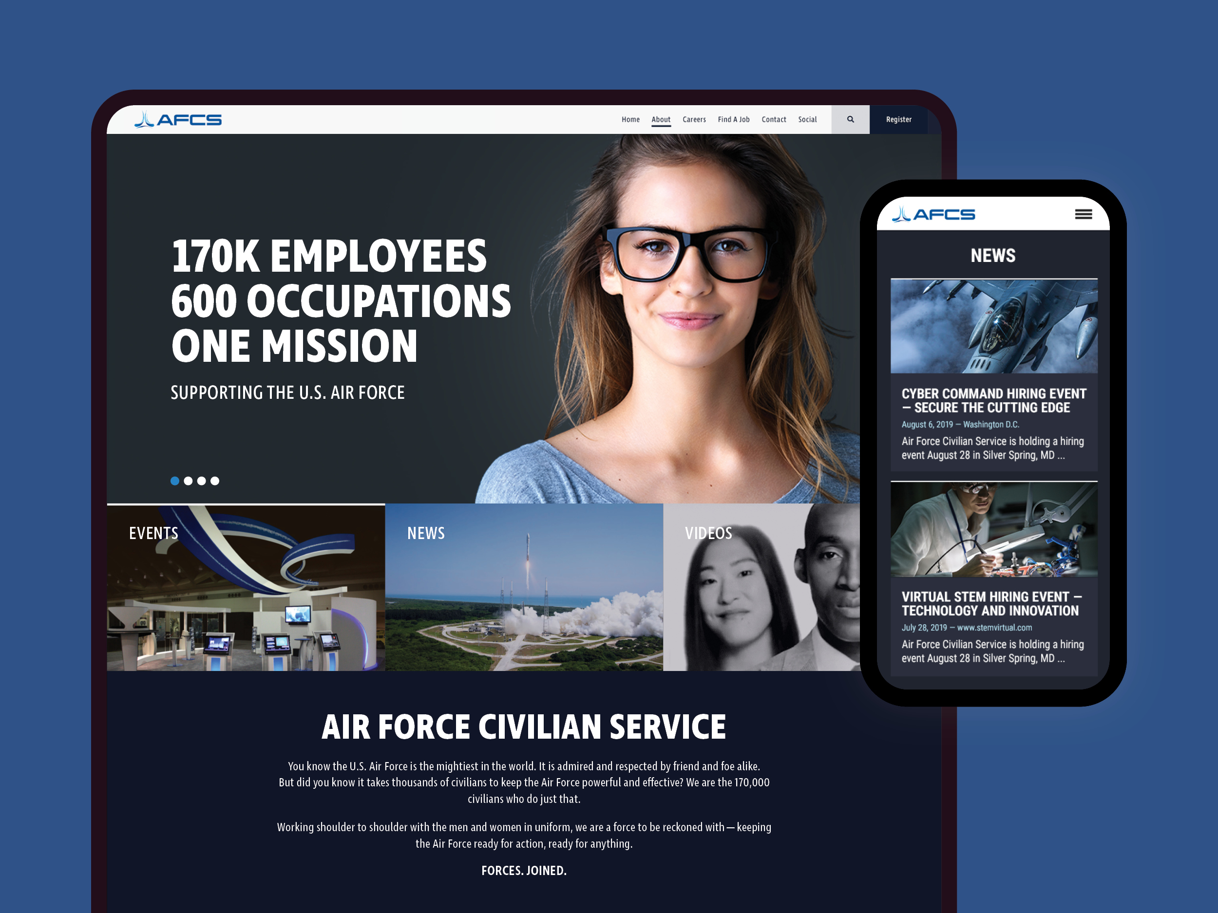 Working with the organization leadership, I designed a new company logo, developed supporting branding, and introduced Air Force Civilian Service (AFCS) to the employment marketplace.