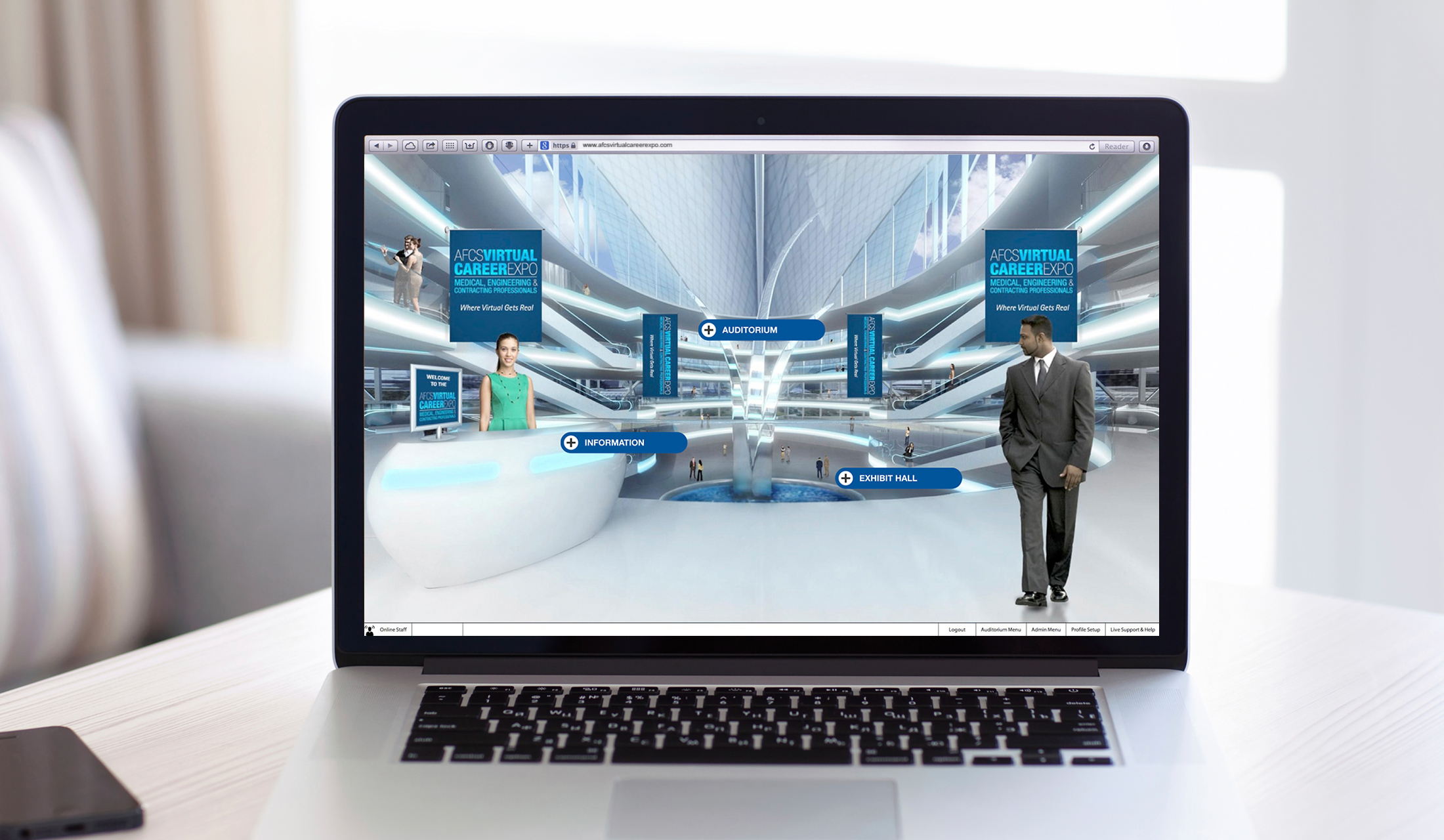 The Air Force Civilian Service (AFCS) also needed a flexible exhibit booth to be used at many different sized job fairs ranging from 10’x10′ all the way up to 40’x40′. For AFCS I designed and managed the construction of two event pavilions to trumpet their arrival on the scene. One in 2020, and one and 2010.